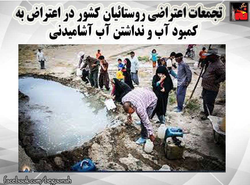 #بگونه : کمبود شدید آب در روستاهای کشور به بحران آب تبدیل شده تا جائیکه روستائیان را مجبور به اعتراض نموده است .کمبود آب شرب و بهداشتی در روستا ها موجب شیوع بسیاری از بیماری ها از جمله وبا خواهد شد و روستائیان شدیدأ نگران سلامتی خود و فرزندانشان هستند. این در حالیست که کارگزاران چپاولگر رژیم هیچ برنامه ای برای رفع کمبود آب در روستاها ندارند و در اصل اهمیتی به اینگونه معضلات که دست آورد خودشان برای مردم است ،نمی دهند.