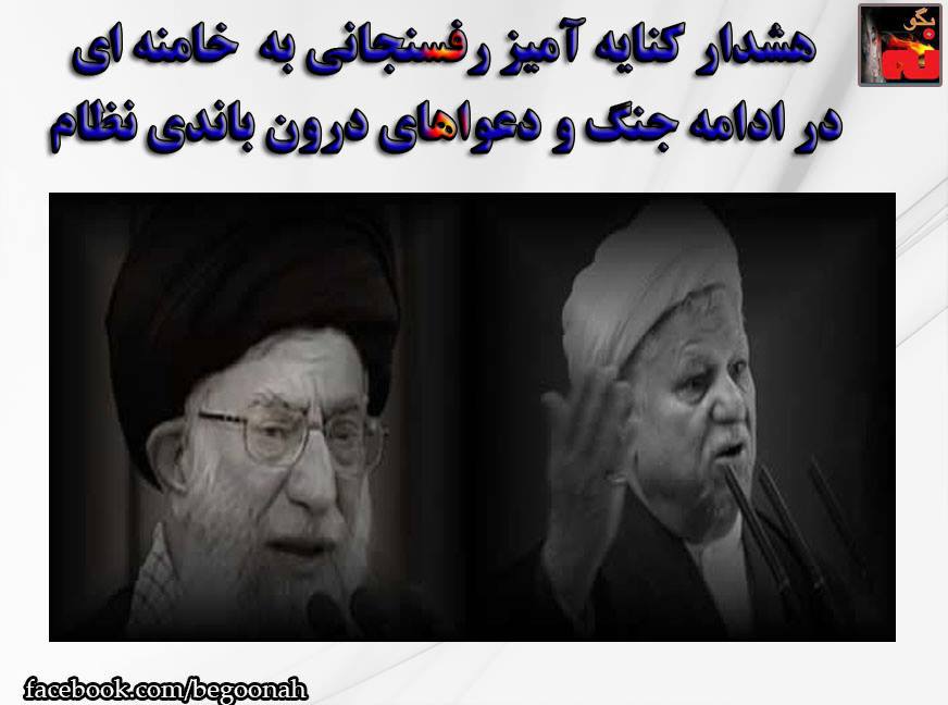هشدار کنایه آمیز رفسنجانی به خامنه ای در ادامه جنگ و دعواهای درون باندی نظام