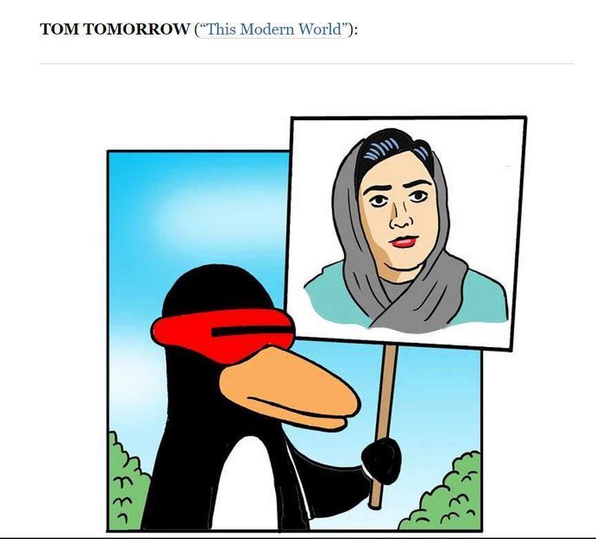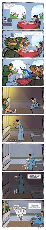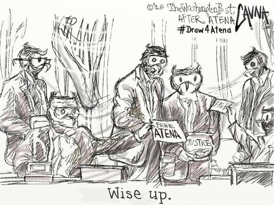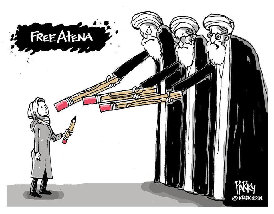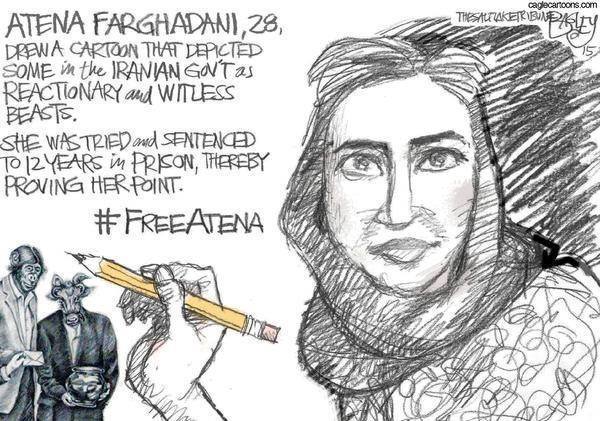 هفتهی گذشته، «مایکل کاونا» (کامیک ریفس)، روزنامهنگار و کارتونیست امریکایی روزنامهی واشنگتنپست با انتشار فراخوانی، از همکارانش در سراسر جهان خواست تا در حمایت از آتنا فرقدانی، فعال جوان ایرانی که به ۱۲ سال و ۹ ماه حبس محکوم شده، طرح بکشند.