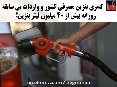 #بگونه : بنا به گزارش خبرگزاری حکومتی فارس ،رژیم برای کسری بنزین مصرفی در سه ماه اول سال جاری شمسی روزانه بیش از 40 میلیون لیتر واردات داشته است. این مقدار واردات بنزین تاکنون بی سابقه گزارش شده است.