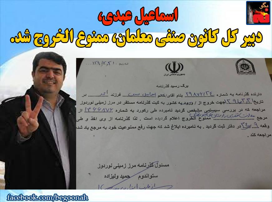 #ایران#اسماعیل عبدی، دبیر کل کانون صنفی معلمان، ممنوع الخروج شد