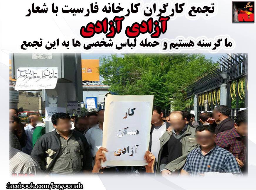 #ایران#تجمع کارگران کارخانه فارسیت با شعار آزادی آزادی، ما گرسنه هستیم و حمله لباس شخصي ها به اين تجمع