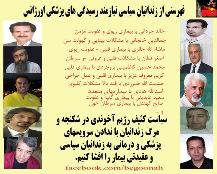 #بگونه :سیاست کثیف رژیم آخوندی در شكنجه و مرگ زندانيان با ندادن سرویسهای پزشکی و درمانی به زندانیان سیاسی بیمار را افشا كنيم.