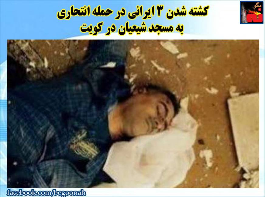 #بگونه: بر اساس اخبار گزارش شده از سایت حکومتی ایرنا، در حمله انتحاری روز جمعه ٢۶ ژوئن/ ۵ تیر به یکی از مساجد شیعیان در کویت ٢٧ تن کشته و دست کم ٢٢٧ تن نیز زخمی شدند. بر اساس همین گزارش 3 ایرانی نیز در بین کشته شدگان دیده می شوند و 5 ایرانی دیگر نیز در جریان این انفجار مجروح گردیدند.