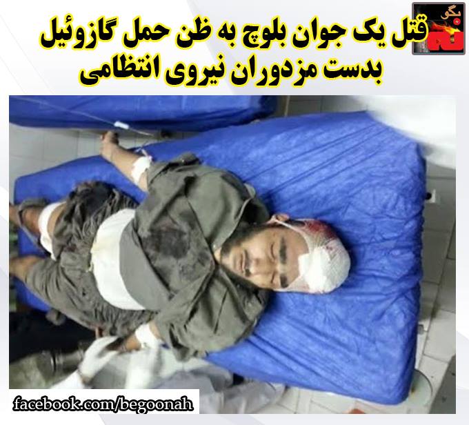 #بگونه: یک جوان اهل سیستان و بلوچستان در چابهار در اثر شلیک مستقیم ماموران انتظامی به قتل رسید. به گزارش فعالین بلوچ، سیف الله سلطانپور فرزند حنیف پس از آنکه نیروهای انتظامی در فلکه شیلات به وی مشکوک شده و دستور ایست می دهند توقف نمی کند و در تعقیب و گریز ماموران در حوالی فلکه تیس این شهر، به سمت وی شلیک می کنند که از ناحیه سر و پا مورد اصابت گلوله قرار می گیرد. گفته میشود که این جوان پس از اعزام به بیمارستان جان سپرده است.