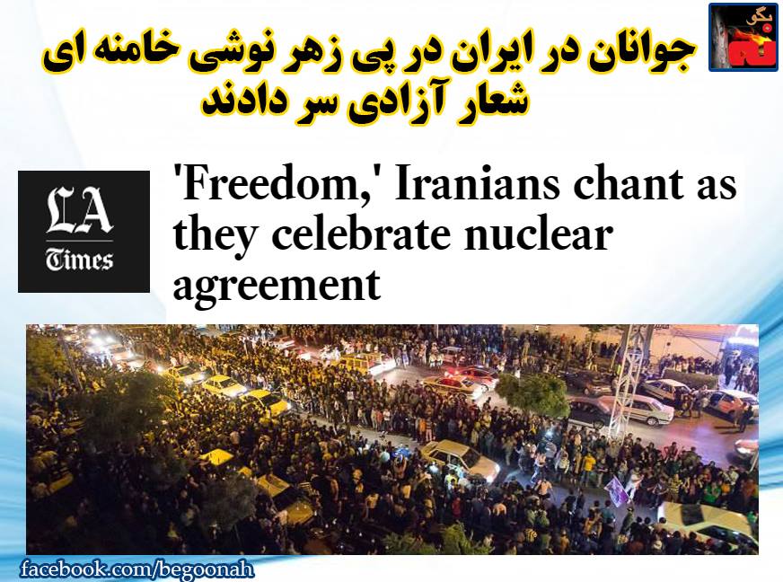 روزنامه لسآنجلس تایمز روز چهارشنبه 24تیر 94 در گزارشی که توسط گزارشگر آن در تهران تهیه شده است نوشت : صدها تن از ایرانیان سهشنبه شب به خیابانهای تهران آمدند و در حالیکه مشت هایشان را بلند میکردند شعار آزادی دادند.