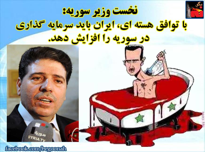 #بگونه: به نوشته خبرگزاری رسمی سوریه (سانا) ، نخست وزیر سوریه , وائل الحلقی روز پنجشنبه گفته است: امضای توافق هسته ای با ایران گامی است که می تواند با آزادسازی پول های بلوکه شده ایران، سرمایه گذاری های وعده داده شده این کشور در سوریه را به دنبال داشته باشد.