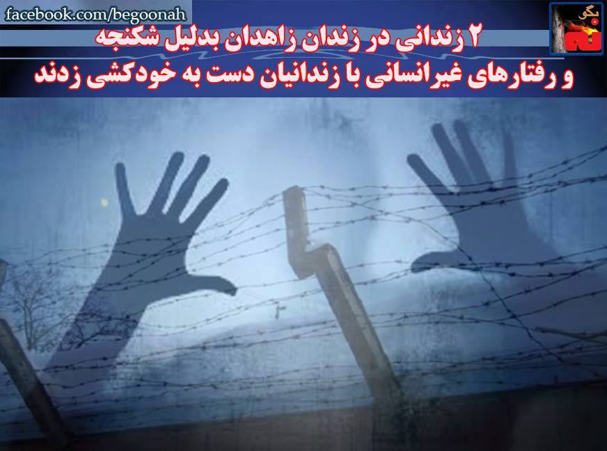#بگونه: بر اساس گزارشات دریافتی از « فعالان حقوق بشر و دمکراسی در ایران » 2 زندانی در زندان زاهدان بدلیل شکنجه های وحشیانه و رفتارهای قرون وسطایی با زندانیان اقدام به خودکشی کردند.