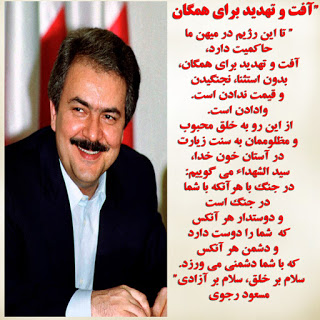 در عين حال خوب مي دانيم كه تا اين رژيم در ميهن ما حاكميت دارد، آفت و تهديد براي همگان، بدون استثنا، نجنگيدن و قيمت ندادن است. تن دادن است. وادادن است.
