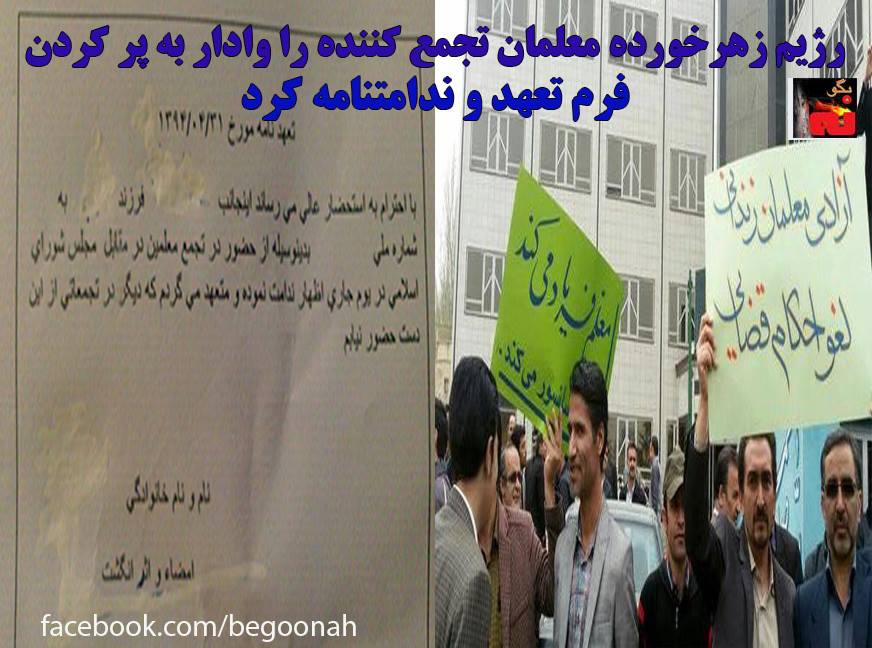 رژیم زهرخورده، معلمان تجمع کننده را وادار به پر کردن فرم تعهد و ندامتنامه کرد
