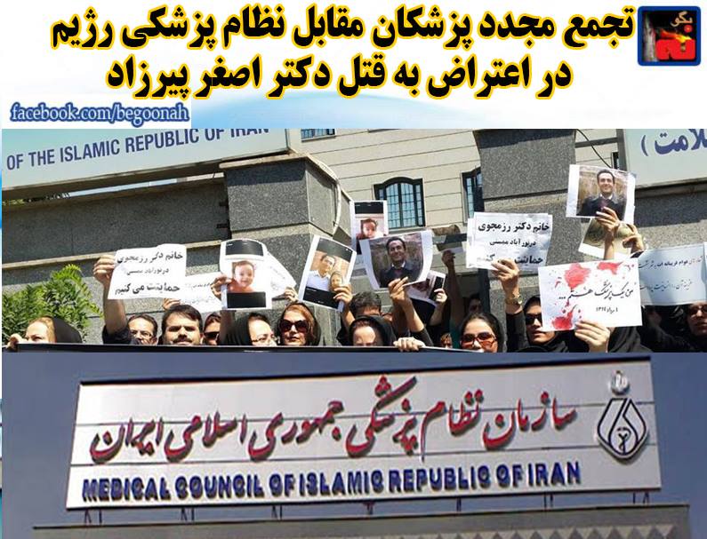 تجمع مجدد پزشکان مقابل نظام پزشکی رژیم در اعتراض به قتل دکتر اصغر پیرزاد