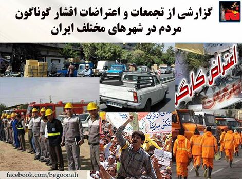 #بگونه: در پی اعتراضات کارگری و مردمی در شهرهای مختلف ایران، روز سهشنبه 6مرداد 94 رفتگران شهرداری در کاشان و کارکنان اداره آتشنشانی در کرمانشاه و رانندگان خودروهای وانت حمل بار در تهران تجمع اعتراضی برگزار کردند.