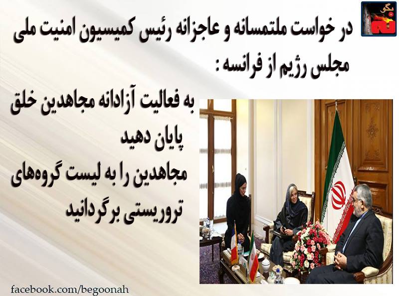 در خواست ملتمسانه و عاجزانه رئيس کمیسیون امنیت ملی مجلس رژيم از فرانسه : به فعالیت آزادانه مجاهدین خلق پایان دهید مجاهدین را به لیست گروههای تروریستی برگردانید