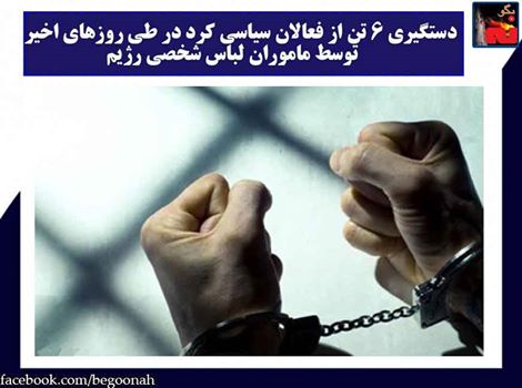 دستگیری 6 تن از فعالان سیاسی کرد در طی روزهای اخیر توسط ماموران لباس شخصی رژیم