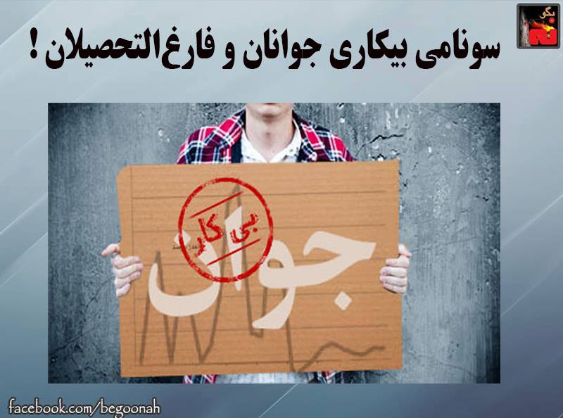 #بگونه : بنا به گزارش خبرگزاریهای حکومتی ،آمارو ارقام بیکاری جوانان و فارغ التحصیلان دانشگاهها شوکهکننده است. افزایش درصد بیکاری در حالیست که آخوند روحانی بر خلاف شعارهای تبلیغاتیش تا کنون درزمینه مشکلات بیکاری اقدامی در جهت رفع ویا پایین آوردن درصد بیکاری انجام نداده است.