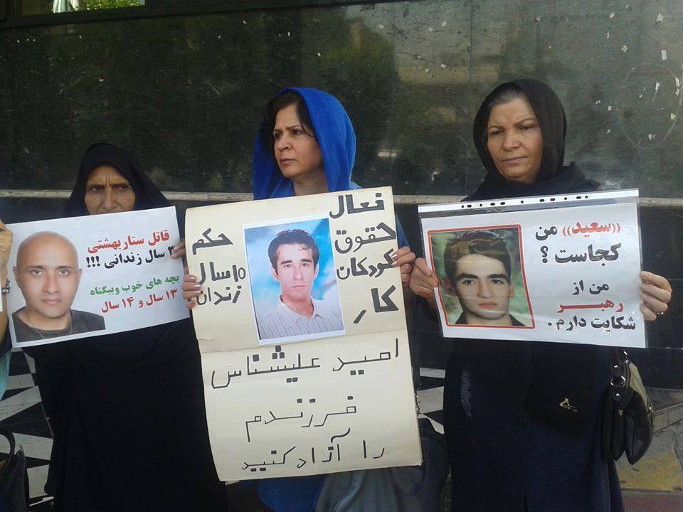 #بگونه: عده ای از فعالان سیاسی و اجتماعی روزهای دوشنبه مقابل دفتر لاستیک دنا در میدان ونک تحصن می کنند تا صدای اعتراض خود را بگوش کارگزاران رژیم برسانند. از آنجمله مادر سعید زینالی است که بیش از 16 سال از فرزندش بی خبر است .حتی به او نمی گویند که قبر فرزندش کجاست، اگر قبری وجود داشته باشد. همچنین مادر ستار بهشتی که خواسته اش برقراری دادگاهی عادلانه برای کسانی هست که فرزندش را کشته اند و همیشه میگوید که من می بخشم ولی باید دادگاهی عادلانه تشکیل شود. مادر امید علیشناس نیز که به فرزندش حکم ده ساله داده اند در تحصن حضور دارد. به امید اتهام اقدام علیه امنیت ملی زده اند در حالی که وی یک فعال حقوق کودک بوده و اکنون در زندان است. دکتر محمد ملکی هم که چندین سال است فرزندش را ندیده و ممنوع خروج شده از معترضین می باشد. تمام ارگان های مربوطه می گویند تو ممنوع خروج نیستی ولی سپاه به او اجازه ی سفر و دیدن فرزندش را نمی دهد.