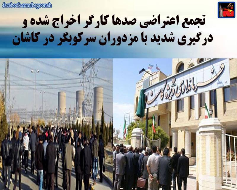 تجمع اعتراضی صدها کارگر اخراج شده و درگیری شدید با مزدوران سرکوبگر در کاشان