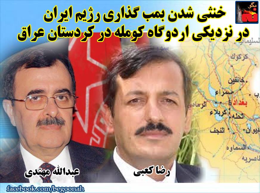 #بگونه: بنابه اخبار منتشره از منابع كردي ،بامداد شنبه 17 مرداد ماه همزمان با تلاش برای ترور”رضا کعبی” معاون دبیرکل کومەله زحمتکشان کُردستان، یک تلاش تروریستی دیگر در مقر حزب کومەله به دبير كلي عبدالله مهتدي به اجرا گذاشته شد كه توسط نيروهاي امنيتي اقليم كردستان عراق خنثي گرديد. بنابه اين خبر، عوامل رژيم ايران در نزديكي مقر كومله ایران 24 کیلو مواد منفجره (تی ان تی) در چند مکان كار گذاشته بودند كه كشف و با همکاری نیروهای ضد تروریسم اقلیم کُردستان_عراق خنثی گردیده است. عامل بمب گذار فردی به نام “علی حبی” ملقب به (علی سروآباد) اعلام شده است.