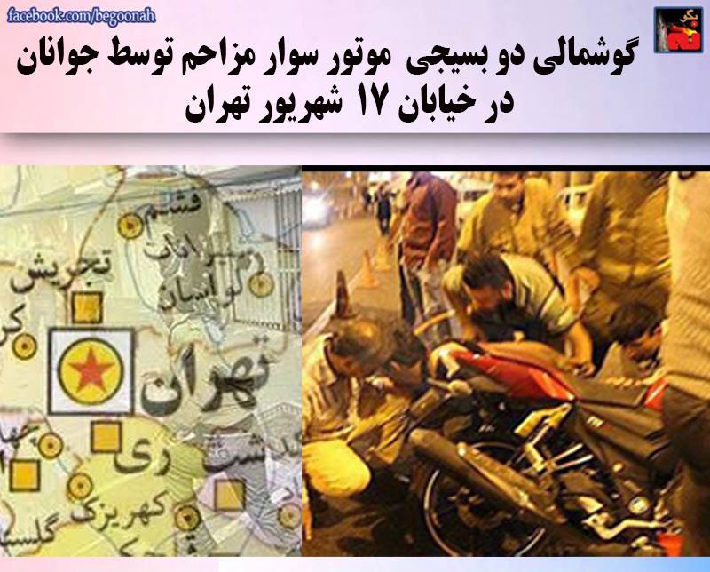 گوشمالي دو بسيجي موتور سوار مزاحم ،توسط جوانان در خيابان ۱۷شهريور تهران