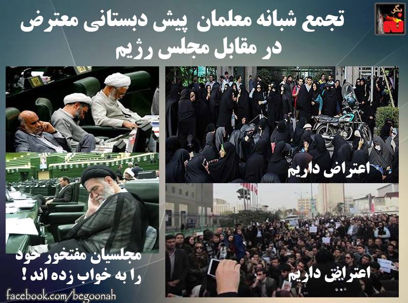 #بگونه : بنابر گزارشات رسیده ،معلمان پیش دبستانی یکشنبه شب ۱۸مرداد در مقابل مجلس رژیم تحصن کردند و شب را به روز رساندند.