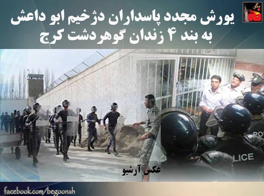 #بگونه : بنا بر گزارش رسیده از زندان گوهردشت ،روز یکشنبه بعد از ظهر پاسداران خامنه ای زهر اتمی نوشیده ،در زندان گوهردشت وحشیانه به بند چهار سالن شماره ۱۱ یورش بردند.