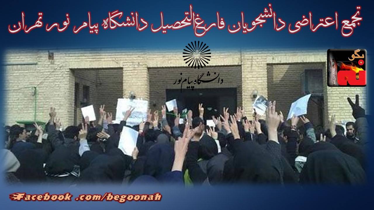بنا به گزارش رسیده ،روز شنبه 24مرداد تعدادی از دانشجویان فارغالتحصیل از دانشگاه پیام نور تهران ـ شاخه جنوب در اعتراض به اخاذی کارگزاران رژیم درمقابل دفتر رئیس مزدور دانشگاه پیام نور این دانشگاه تجمع کردند.