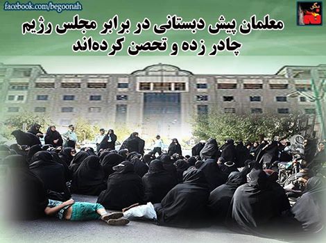 #بگونه : معلمان پیش دبستانی هفته گذشته گفته بودند که اگر به خواسته هایمان نرسیم دوباره می آییم و در مقابل مجلس تحصن می کنیم . با بی اعتنایی کارگزاران رژیم به خواسته های بر حق این معلمان زحمتکش روز دوشنبه شب26مرداد معلمان پیش دبستانی در مقابل مجلس بی کفایت رژیم به گفته ی خود عمل نموده تحصن و اعلام کردند چادر میزنیم و تا صبح در این محل میمانیم