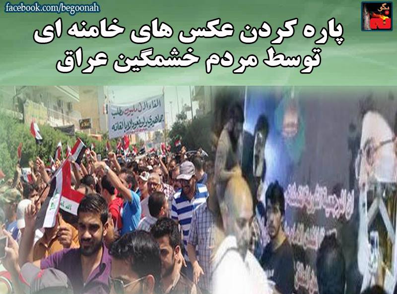 #بگونه: بگزارش تلویزیون التغییر روز سی و یکم مرداد هزاران نفر از مردم بغداد طی تظاهراتی در میدان التحریرعکسهای علی خامنهای را که توسط شبه نظامیان مسلح نصب و توزیع شده بود را پاره کردند.
