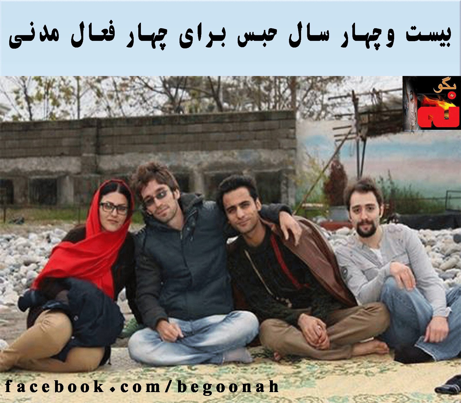 #بگونه:«آرش صادقی»، «گلرخ ایرایی»، «نوید کامران» و «بهنام موسیوند» چهار فعال مدنی، از سوی شعبه ۱۵ بیدادگاه انقلاب تهران به ریاست دژخیم «صلواتی» در مجموع به تحمل ۲۴ سال حبس محکوم شده ند.