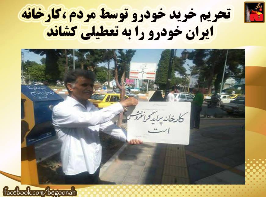 #بگونه : مردم ایران در یک حرکت خودجوش و هماهنگ در مقابل گرانی سرسام آور محصولات کارخانه ایران خودرو ، خرید خودرو از این شرکت را تحریم کرده اند.