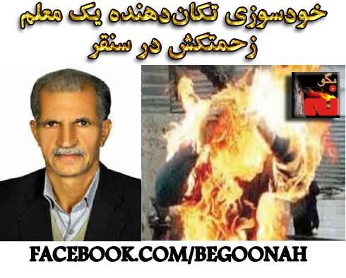 جریمههای سنگین شهرداری و اخاذی ایادی رژیم کارد را به استخوان این معلم رسانده طوریکه وی یک گالن بنزین به روی ریخته و خود را به آتش کشیده است.