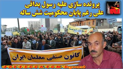 #بگونه: به گزارش شبكه« حقوق معلم و کارگر»، در حالي كه دوران محكوميت شش ساله معلم زنداني رسول بداقي به پايان رسيده ، دادگاه رژيم در تلاش براي پرونده سازي جديد عليه وي مي باشد تا از آزاي وي جلوگيري نمايد. بنا به گفته همسر آقای بداقی، درملاقات اخیر با ایشان مشخص شده که شعبه بیست وهشت دادگاه رژیم، زیر نظر قاضی مقیسه در شرف پرونده سازی جدید با اتهام اخلال در امنیت نظام علیه این معلم زندانی و عضو کانون صنفی معلمان میباشد.