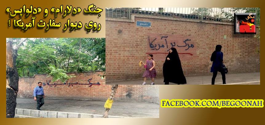 #بگونه : چند روز پيش به نقل از سايت پاسدار قاليباف شهردار تهران با عكس و سند خبر داديم كه شعارهاي « مرگ آمريكا» ي «دلواپس » نظام توسط «دلارام» نظام پاك شد. اما در پي خبر حذف اين شعار و بازتاب آن در فضاي مجازي خبر تازه حاكي از «بازگشت «مرگ بر آمریکا «به دیوار سفارت «شيطان بزرگ» است!