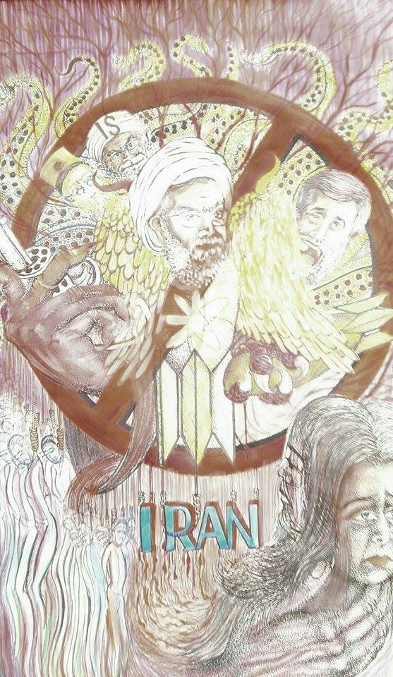 طرحي از كريم اعظمي در اعتراض به سفر آخوند روحاني به فرانسه