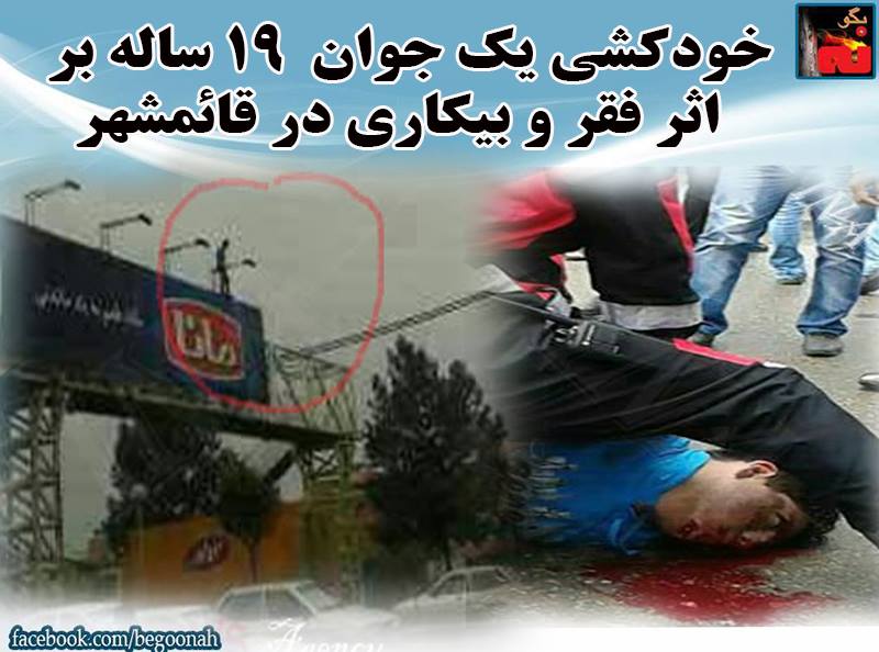 #بگونه : در حالیکه کارگزاران دزد و فاسد رژیم جنایتکارو چپاولگر خامنه ای ، در حال دزدی و اختلاس و غارتگری تروت مردم هستند و آشکارا یکدیگر را در این دزدیها افشا میکنند ، جوانان با بیکاری و فقر و سرکوب دست و پنجه نرم میکنند و هر روزه خبر دلخراش از خودکشیهای فردی و خانوادگی که دیگر تاب و توان نیاورده و به مرگ خود راضی شده اند، به دستمان می رسد .