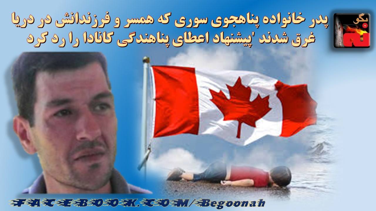 #بگونه: نوشدارويي و بعد از مرگ سهراب آمدي سنگدل اين زودتر ميخواستي حالا چرا؟! دولت كانادا كه پیشتر درخواست پناهندگی او، همسر و دو فرزندش را رد کرده بود اكنون پس از مرگ همسر و فرزندان به پدر اين خانواده پيشنهاد اعطاي پناهندگي داده است. اما عبدالله کردی، پدر دو کودکی که غرق شدن آنها به همراه مادرشان در مسیر ترکیه به یونان از سه روز پیش خبرساز شده، پیشنهاد اعطای پناهندگی از سوی کانادا را رد کرده است.