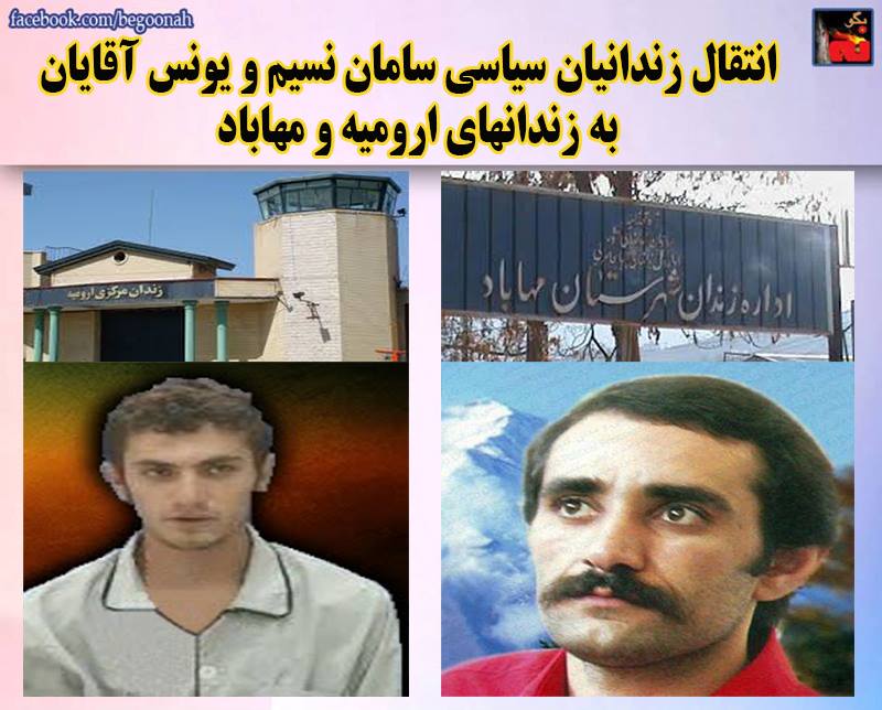 #بگونه : بنا به گزارش رسیده روز شنبه ۲۸ شهریور، زندانیان سیاسی سامان نسیم و یونس آقایان از زندان مرکزی زنجان به بازداشتگاه امنیتی شهر ارومیه منتقل شدند.و صبح روز یکشنبه ۲۹شهریورمأموران مزدور امنیتی زندان سامان نسیم را به زندان مرکزی ارومیه و یونس آقایان را به زندان مهاباد انتقال دادند.