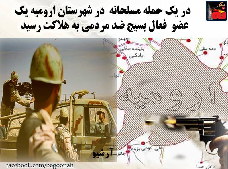 در يك حمله مسلحانه در شهرستان اروميه , يك عضو بسيج ضد مردمي به هلاكت رسيد