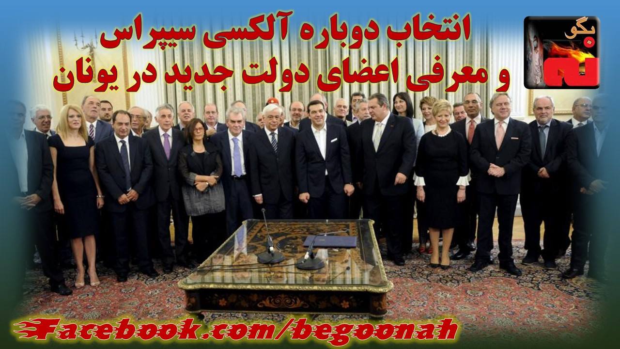 #بگونه: در پی استعفای نخست وزیر سابق یونان و انجام انتخابات زودرس در این کشور که همراه بود با پیروزی مجدد آلکسی سیپراس، از اینرو نخست وزیر جدید یونان، تنها بیست و چهار ساعت پس از ادای سوگند در پارلمان این کشور، اعضا دولت جدید خود را معرفی کرد.