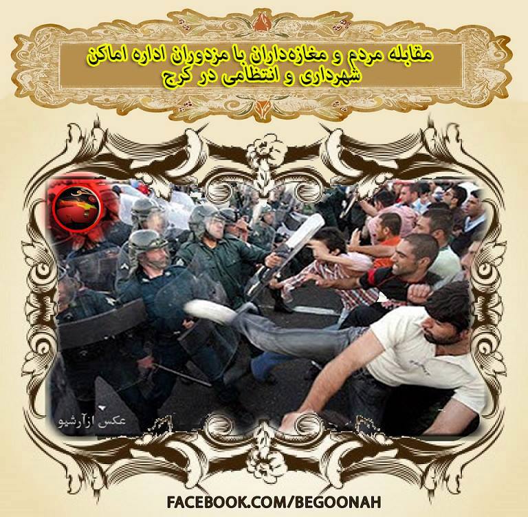 مقابله مردم و مغازهداران با مزدوران اداره اماکن شهرداری و انتظامی در کرج