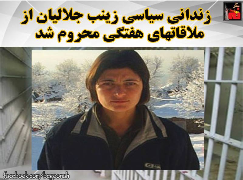 #بگونه : بنابر گزارش رسیده ، دژخیمان رژیم در زندان ،زندانی سیاسی زینب جلالیان را از ملاقاتهای هفتگی محروم کردند.این فشارها در حالی است که وی از بیماری چشم رنج میبرد و در معرض خطر نابینایی قرار دارد. و مأموران مزدور و جنایتکار امنیتی در زندان از عمل چشم او سر باز میزنند.در حالیکه پزشکان گفته اند اگر عمل جراحی انجام نگیرد وی نا بینا میشود
