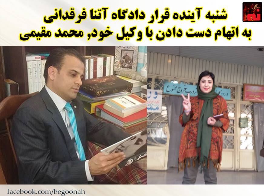 بنا به گزارشهای رسیده ساعت ۱۰ روز شنبه آینده در بیدادگاهی در تهران قرار است اتهام رابطه نامشروع دون از زنا منتسب به آتنا فرقدانی و وکیل او محمد مقیمی که پیرو دست دادن این وکیل و موکل بررسی شود.