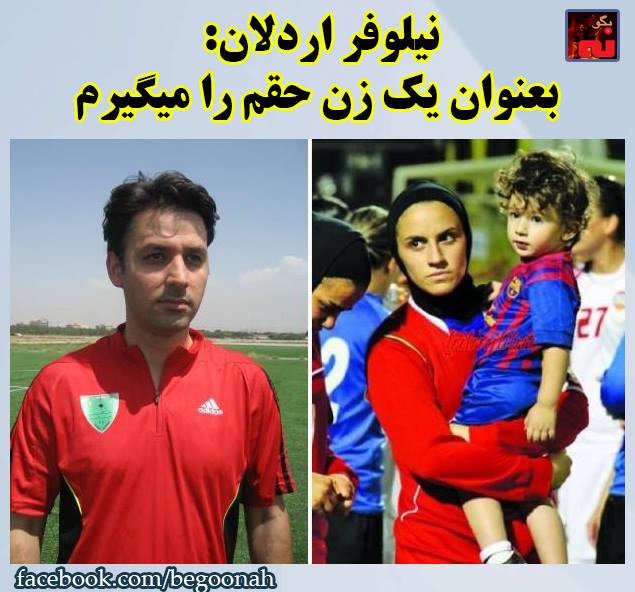 #بگونه: زنان در رژیم حاکم بر ایران همواره مورد ستم مضاعف بوده اند بویژه که قوانین ضد زن در ایران به مردان اجازه میدهد همسر خود را مانند یک کالا و شیئ یا ملک در اختیار خویش بدانند و اجازه هیچگونه رشد و ترقی را به آنان نمیدهد. یک نمونه اخیر که شاهد آن بودیم محرومیت نیلوفر اردلان عضو برجسته تیم فوتسال از شرکت در بازیهای آسیایی بدلیل مضحک و در عین حال خشم آور عدم اجازه شوهر می باشد.
