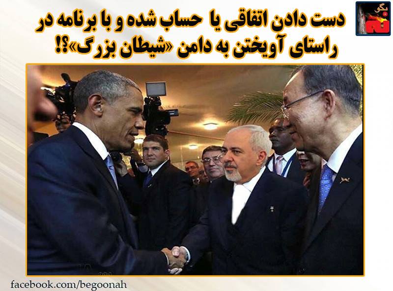 #بگونه:حاصل سفر زهر آلود شيخ حسن روحاني به نيويورك كه نيمه كاره ماند و به بهانه خاكسپاري كشته شدگان حادثه مكه كه بدون ترديد و با توجه به جارو جنجال و تاكتيك فرار به جلو رژيم و آي دزد آي دزد گفتن و تلف شدن شماري از ديپلمات تروريست ها و اعضاي دفتر بعثه خامنه اي كار خودش بوده است،به نظر مي رسد تنها موفقيتش دست دادن ظريف با رئيس جمهور شيطان بزرگ بوده كه تاكنون مذاكره و قدم زني و قهوه نوشي با وزير خارجه اش ايرادي نداشته اما دست دادن با رئيس كري اركان نظام را به لرزه در آورده است! واکنشهای باند خامنه اي به دست دادن محمد جواد ظریف با باراک اوباما پس از بازگشت روحانی از نیویورک، تا كنون بسيار توفانی و خشمآلود و آتشین بوده است و متقابلاً پاسخ باند رفسنجانی روحانی را در پي داشته كه میدان این تک و پاتکها، از مجلس تا روزنامهها و حتی تلویزیون رژیم گسترش يافته است. در این رابطه به نظر میرسد باند ولیفقیه، دست دادن ظریف با اوباما را حلقه ضعیف زنجیره پروژه «تعامل» روحانی یافته و حملاتش را فعلاً روی آن متمرکز کرده است .