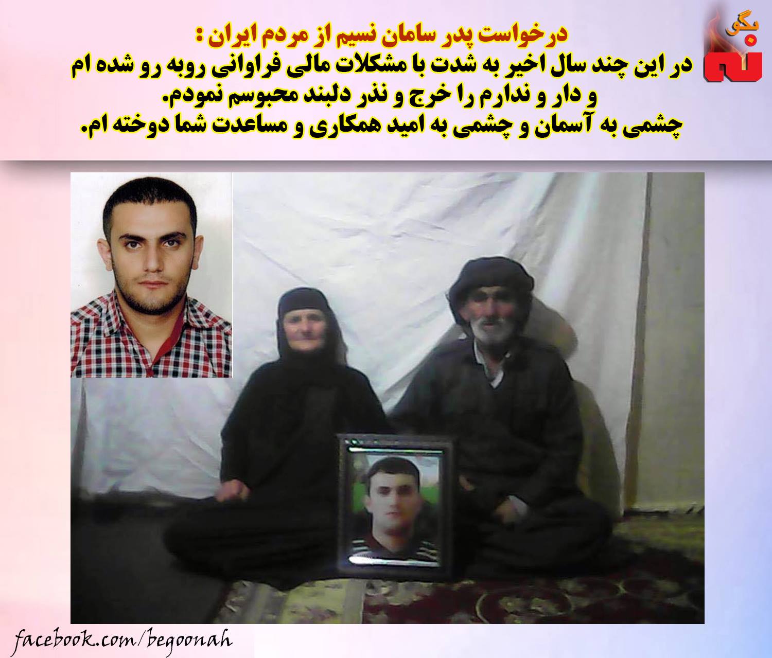 #بگونه: روز پنج شنبه ٩ مهرماه ١٣٩٤ “فايق نسيم”، پدر سامان نسيم زنداني سياسي كرد كه هم اكنون در زندان مركزي اروميه محبوس مي باشد، با نوشتن نامه اي كه جهت انتشار آنرا در اختيار آژانس خبری موكريان قرار داد از مردم درخواست مساعدت نمود.