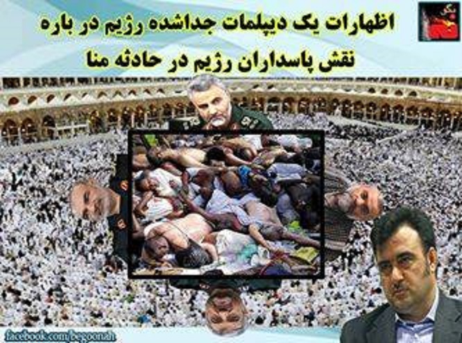 در همین راستا، امروز یکشنبه 12مهر 94 العربیه در پایگاه اینترنتی خود نوشت: در زمانی که تجاوز و تعدی رژیم ایران توسط مقامهای سیاسی و نظامی این رژیم علیه عربستان سعودی بالا گرفته و ولیفقیه این رژیم در اولین شرارتهایش مسئولیت حادثه دردناک مکه را که در آن صدها تن قربانی شدند متوجه عربستان سعودی کرد، دیپلومات جدا شده رژیم ایران فاش ساخت که شش تن از افسران سپاه پاسداران حادثه منا را ایجاد کردند. وی رژیم تهران را متهم کرد که طرح این حادثه را با هدف کشتار بیشترین تعداد حجاج و تظاهراتی بزرگ با اعمال خشونتآمیز تهیه کرده بود.
