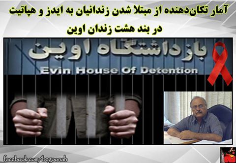 این استاد بازنشسته دانشگاه تهران و زندانی سیاسی، در نامهای از داخل بند هشت زندان اوین، از وجود هفت زندانی مبتلا به ویروس اچ.آی.وی/ایدز، ۱۰ نفر مبتلا به هپاتیت، و ۱۵ زندانی مبتلا به «بیماریهای پوستی صعبالعلاج»، تنها در سالن ۹ بند ۸ خبر داده و خاطرنشان کرده که احتمالا وضعیت سالنهای دیگر این بند نیز مشابه است.