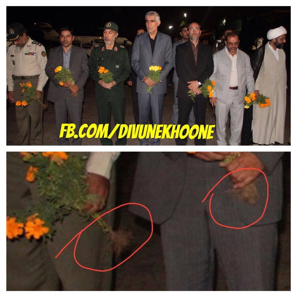 همانطور که در تصویر می بینید دزدان حکومتی با چیدن گلهایی با ریشه از باغچه های اطراف فرودگاه شیراز، کمال همدردی و تاسف خود را اینگونه با خانواده های جان باختگان حادثه اعلام کردند !