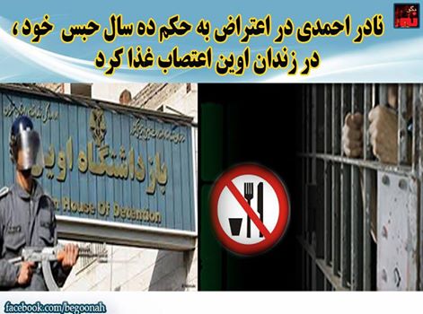 #بگونه : بنا به گزارش رسیده ، نادر احمدی، زندانی در بند هفت زندان اوین در اعتراض به حکم ده سال حبس خود از روز یازدهم مهر،اعتصاب غذا کرده است