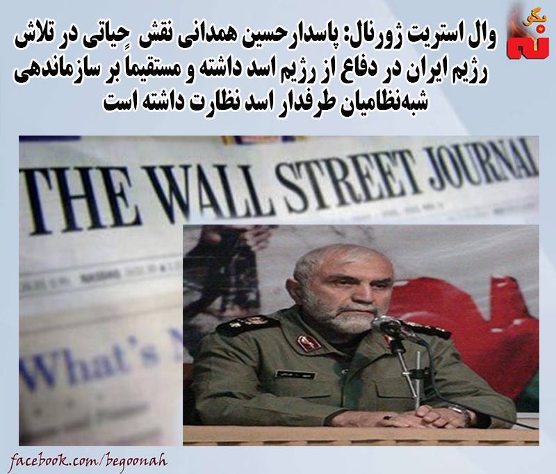 وال استریت ژورنال: پاسدارحسین همدانی نقش حیاتی در تلاش رژیم ایران در دفاع از رژیم اسد داشته و مستقیماً بر سازماندهی شبهنظامیان طرفدار اسد نظارت داشته است